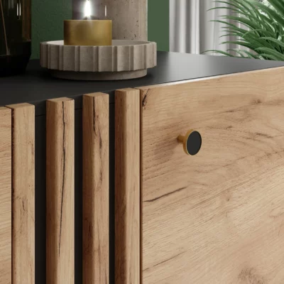 Die Kollektion DECO ist ein Möbel für den anspruchsvollen Kunden. Ein Set in goldener Eiche und anthrazitfarben, hervorgehoben durch einen goldenen Griff mit Lederapplikation. Ein Spiel der Kontraste, kombiniert mit Eleganz und Schick.